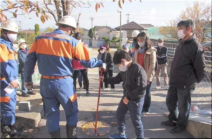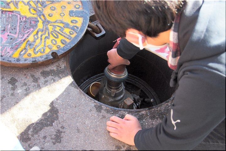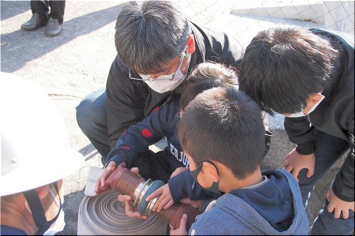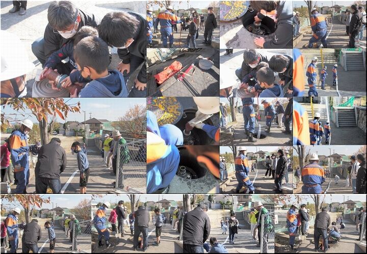 消化ホースを接続し、消火栓を開き、いよいよ放水開始ですけど、お父さんとお子さんが仲睦まじく指導を受けながら取り組んでおられます様子は、大変微笑ましい光景です(^.-)☆