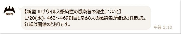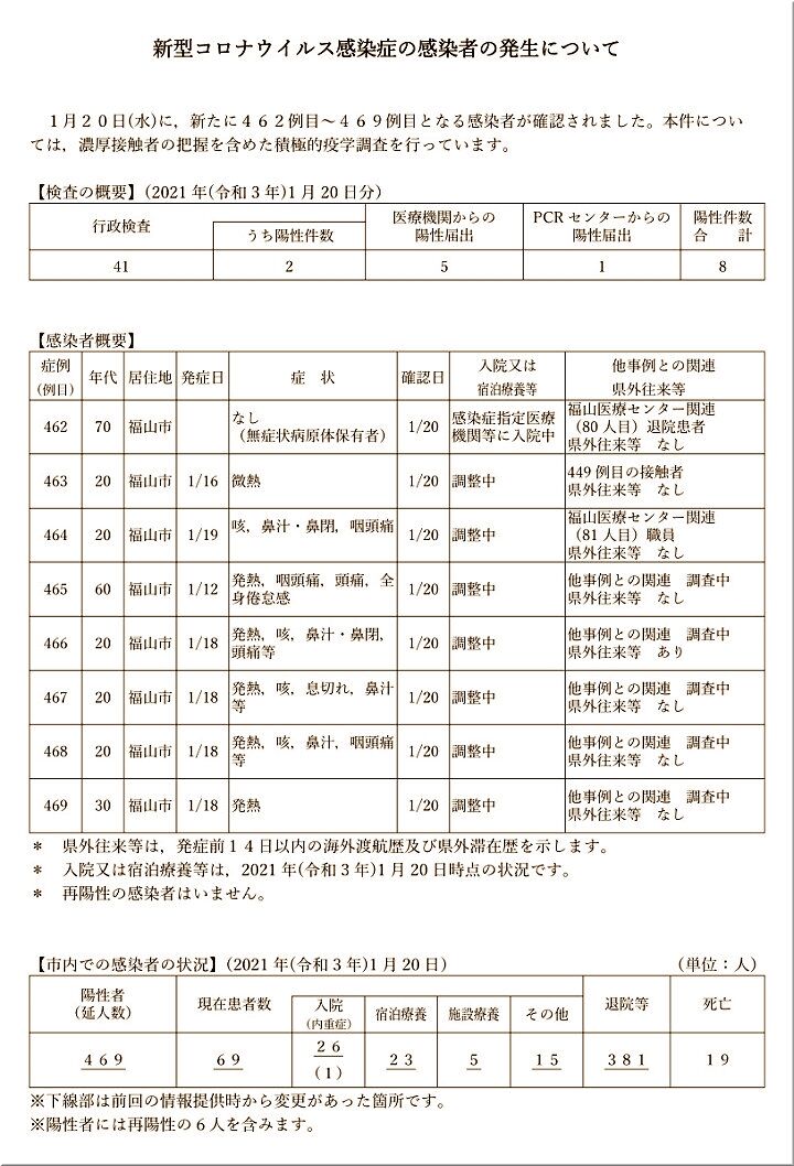 1/20(水)、462~469例目となる8人の感染者が確認されました。