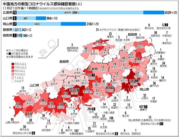 ◆広島県29人感染、2人死亡 21日新型コロナ