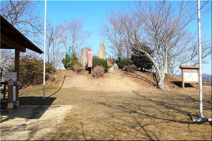 山頂にと上がって来ますと、中央部に「北条早雲生誕の地」の石碑が存在です。