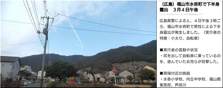 ◆(広島)福山市水呑町で下半身露出 3月4日午後