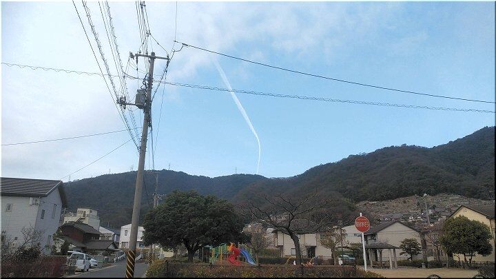 普段ですと、このまま直進で山に隠れてしまうのですけど、左に旋回とは実に珍しい光景でありました。ですから、急いでスマホを取り出しパチリです(^_^)v