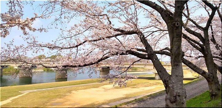 うん、うん、これは、岡山の後楽園と言うか「旭川さくらみち」の景観ですネ。