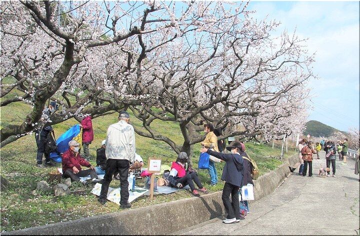 コロナ禍ですから、密を避けながら、満開の杏の木の下で、今からお弁当を広げようか…と言ったグループも(^.-)☆
