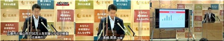 県は併せて6日、広島、福山両市の従業員10人以上の全事業所で働く56万人を対象にしたPCR検査の集中実施を発表した。内訳は、検討を表明済みの広島市が40万人(約1万2千社)、新たに追加した福山市が16万人(約5千社)で、半数の28万人以上の受検を目指す。新型コロナ対応の改正特別措置法に基づき6日、事業者に協力を要請したが、強制力はない。概算事業費は13億円。(長久豪佑)