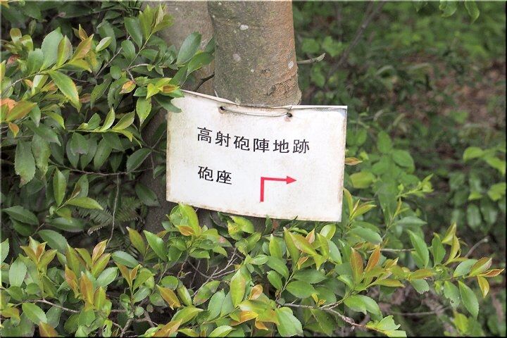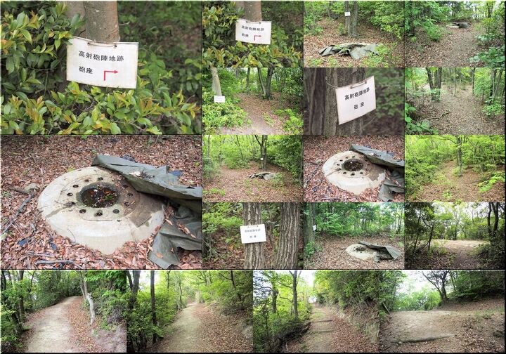 整備されました遊歩道を進んで行きますと、程なく「高射砲陣地跡 砲座」の案内表示板が…