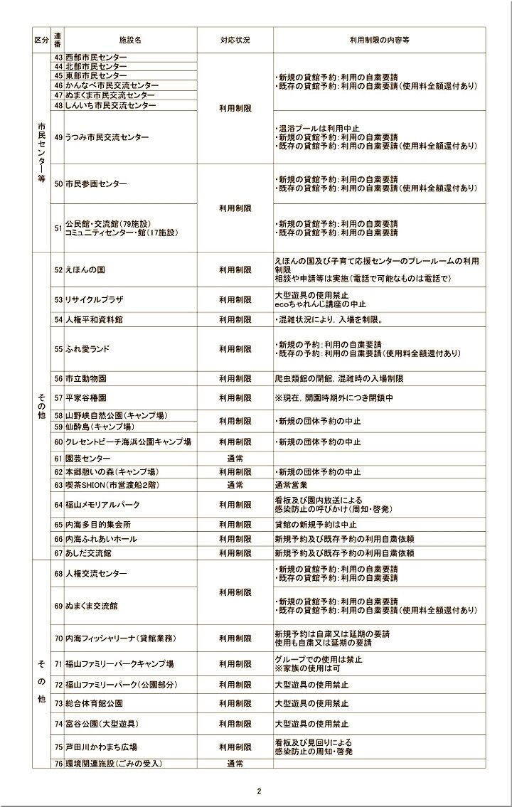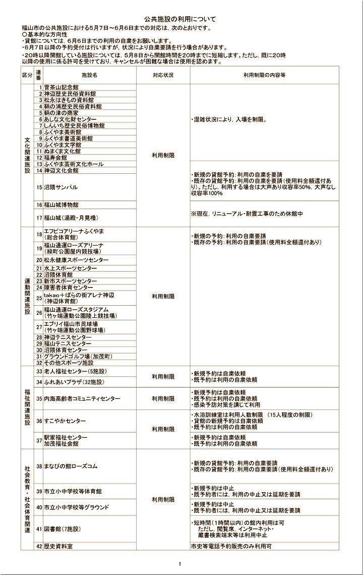 ・【新型コロナウイルス感染防止緊急対処における公共施設の利用について】