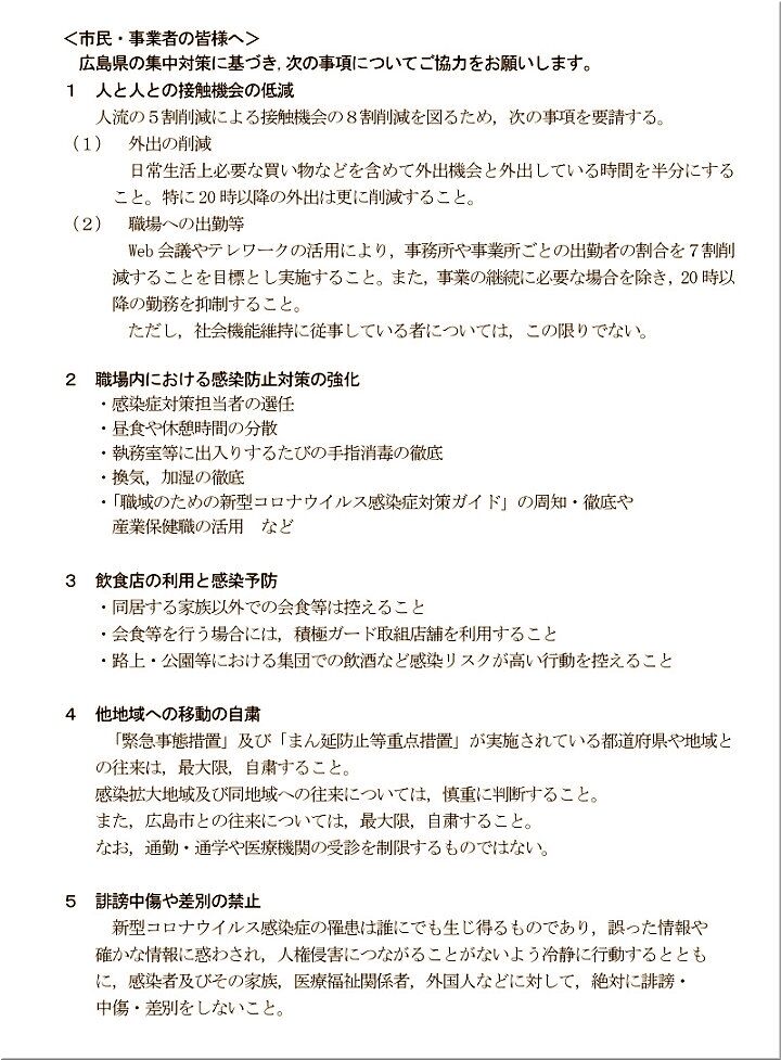 6/6(日)までを緊急対処期間として取り組んでいます。日常生活においては可能な限り人との接触を減らしてください。