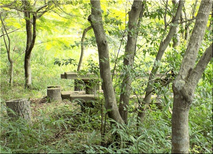 また進んで行きますと、ベンチ・テーブル・イスが設置されてはいますけど、ここも同様。周囲の樹木に囲まれ蛇でも出そう(^-^;