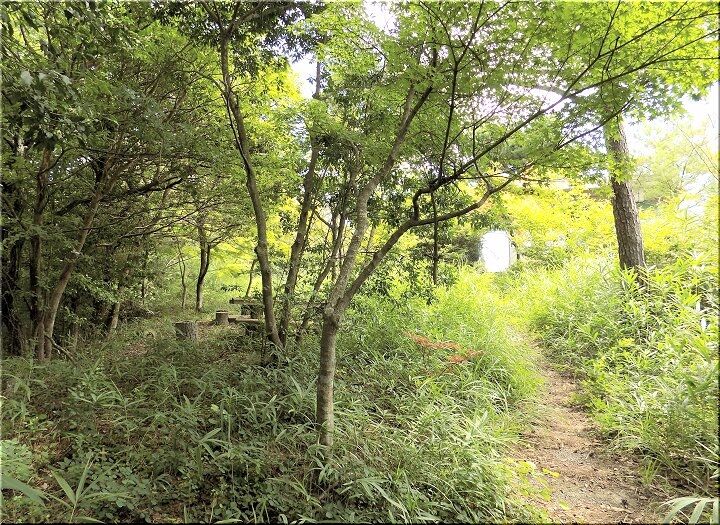 暫く歩いて行きますと、スグにベンチとテーブルが…当初は座って眺望が楽しめましたのでしょうけど、樹木の成長で遮られ、展望は不能です(^-^)