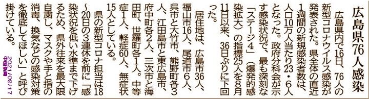 福山市の9/12(日)の新たなコロナ感染者は「6人」でしたから、以降の今週は、一桁台の感染者に治まってくれれば…との淡い期待がありましたGONsanですけど、う~ん、残念。そんなに甘くはありませんようですねぇ~