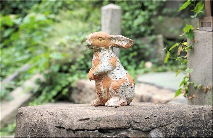 駐車までの帰路は、いつもは通りません路地をランダムにノンビリと歩いて…そぅしますと、こんな所に祠が…そして、その前にはウサギsanが…