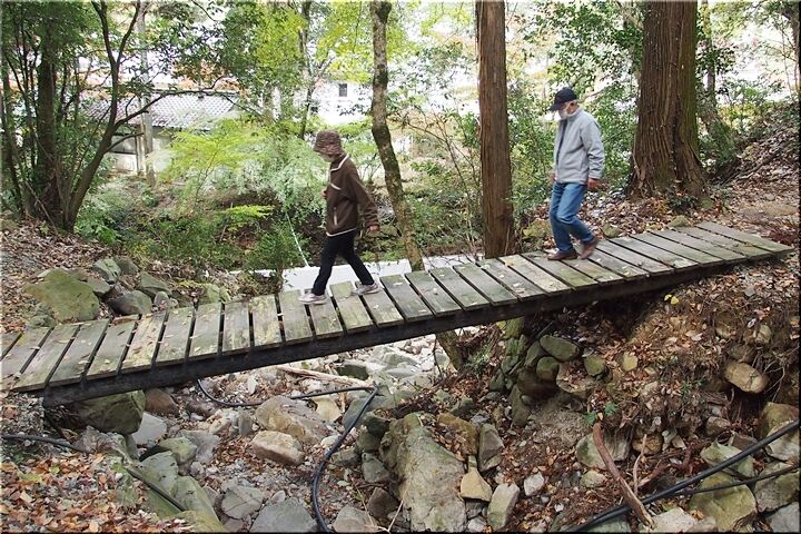 木橋まで下りて来まして、橋の上流に眼を向けますと、水の流れはありませんけど、上流の見えなくなります辺りまでズラッと岩が…久井の岩海の小型版…と言ったところでしょうか(^-^)