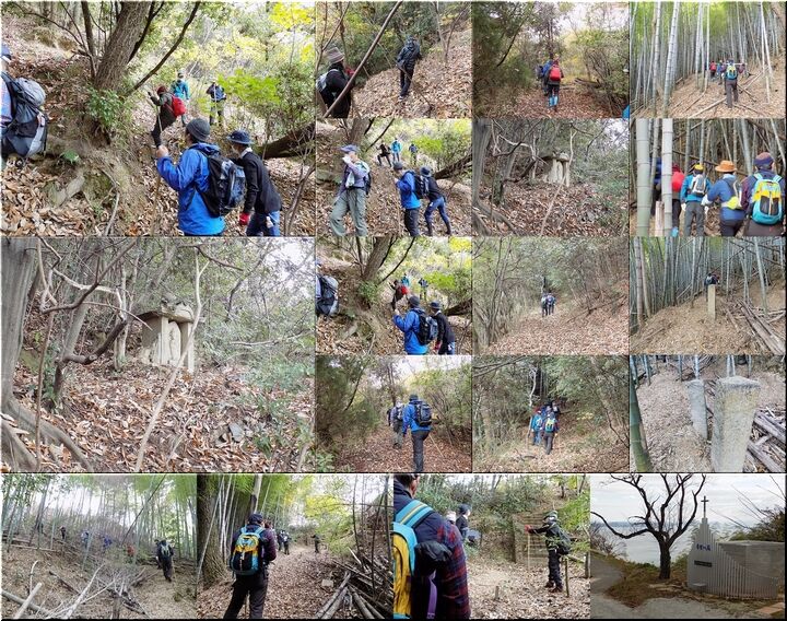 お一人、ご年配の方がおられまして、何度かロープを頼りに斜面上がりを試みましたが、残念ながら、この方は断念。車で、鞆の浦スカイライン→グリーンラインへと、向かわれる事となりました。