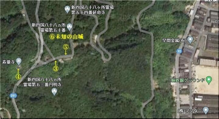「未知の山城探索」のスタート地点は、マップの⑤の地点からですけど、11時までには40分近く時間的余裕が(^-^)