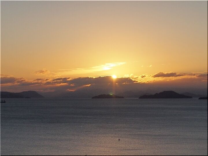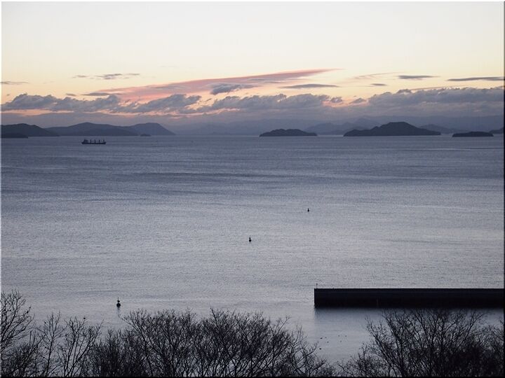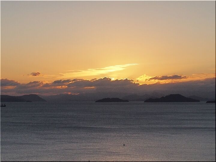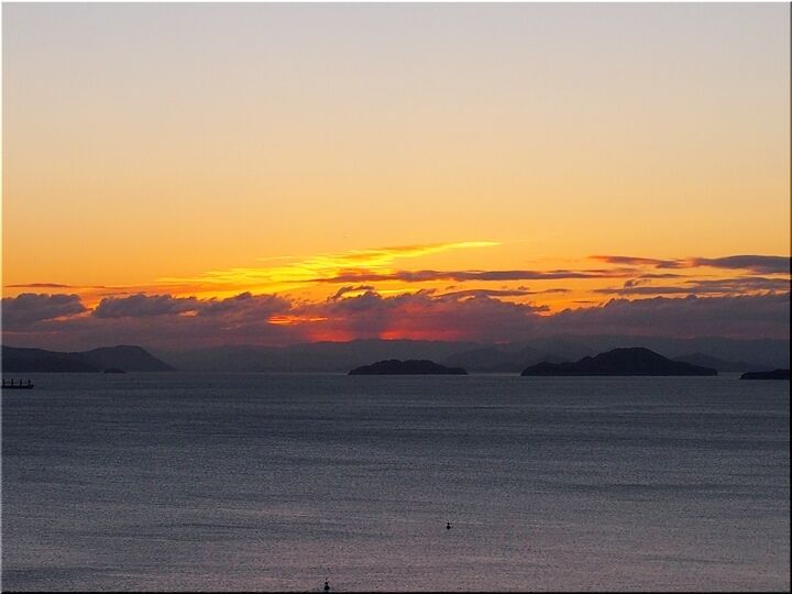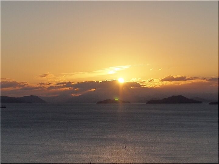 初日の出を見よう…と、護岸沿いにズラッと車が駐車です。片側一車線の、そんなに広い道でもありませんから、対向車がヤッて来ますと、鞆方面に向かいます車は駐まるか徐行で対向車が優先です。こんな事情でノロノロ走行が発生のようですねぇ~
