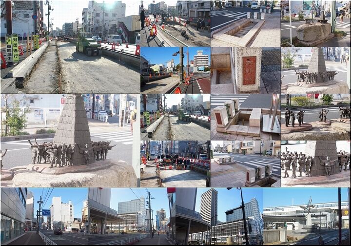 福山駅方向に向かいながら、福山駅を背景に、野田正明sanのモニュメント『いまこそ未来』をパチリとなりました(^-^)//"