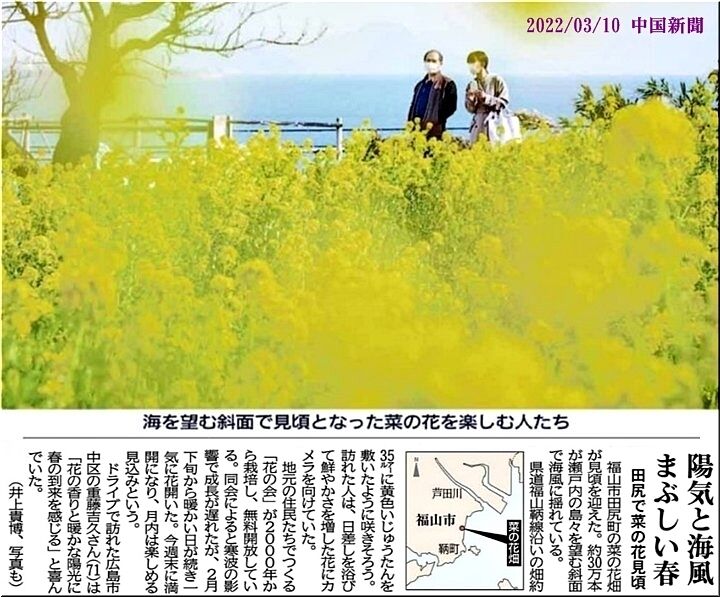 これは、3/10(木)・中国新聞sanの朝刊記事なんですけど、田尻町の菜の花畑が見頃を迎えましたようですネ(^.-)☆