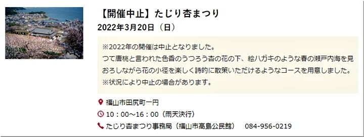 3/6(日)に「まん延防止等重点措置」が解除されていますので、今年は開催とばかり思っていたのですけど、本日、確認してみましたら、残念ながら、既に中止となっておりました(^-^;