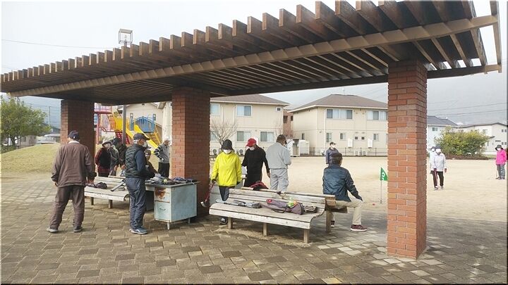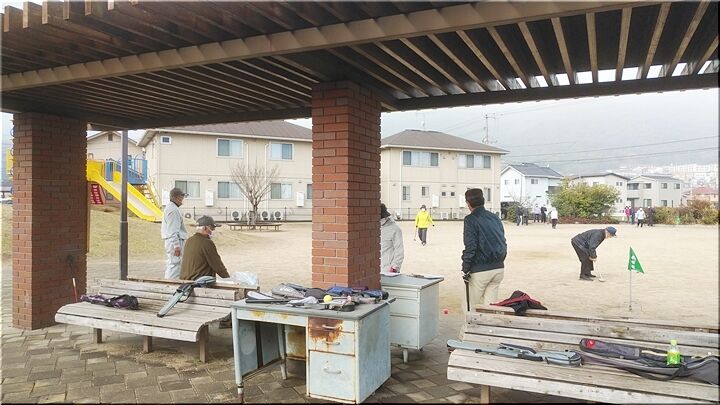 これは、今朝のグラウンドゴルフの一コマなんですけど、雨上がりの曇天にも関わらず、本日の参加者は多かったですネ(^.-)☆