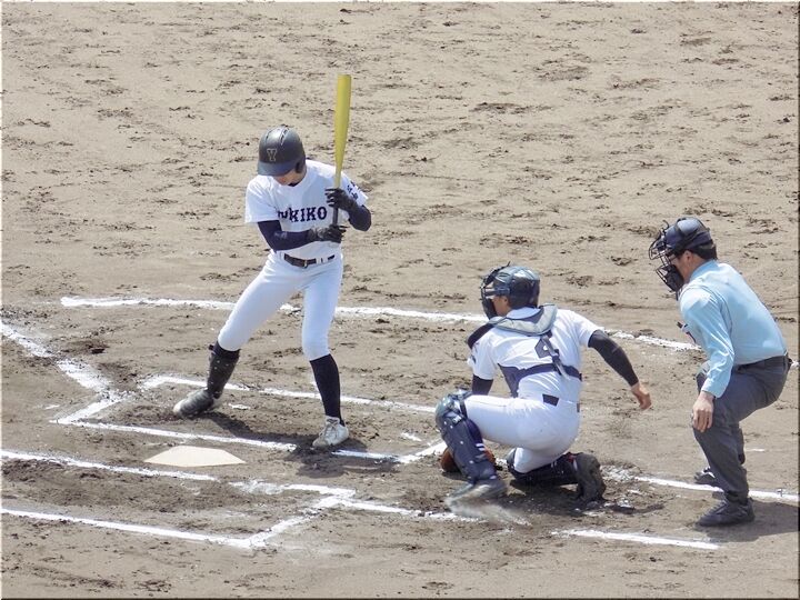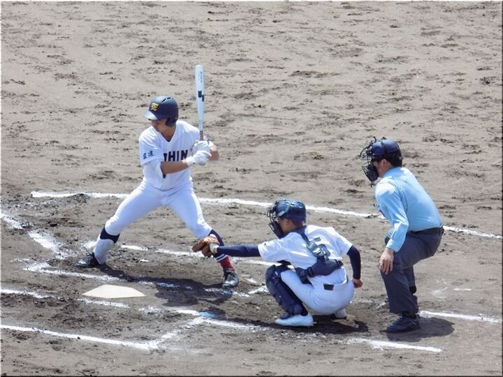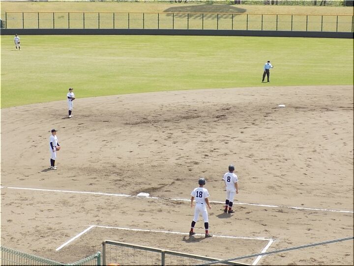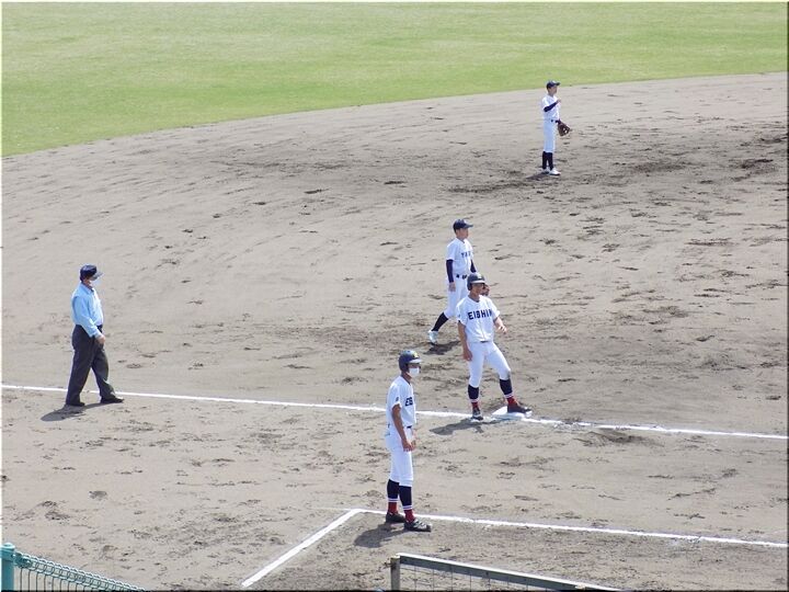 先攻の盈進高校、幸先良く、まずは1点先取。そして、その後も追加点のチャンス。大量得点に繫がりますでしょうか(^-^)//"