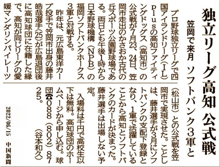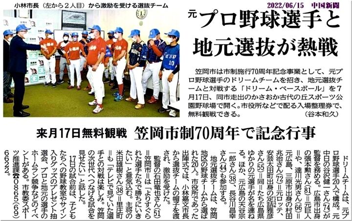 中国新聞sanの朝刊紙上から、野球関連の話題を拾ってみました(^-^)