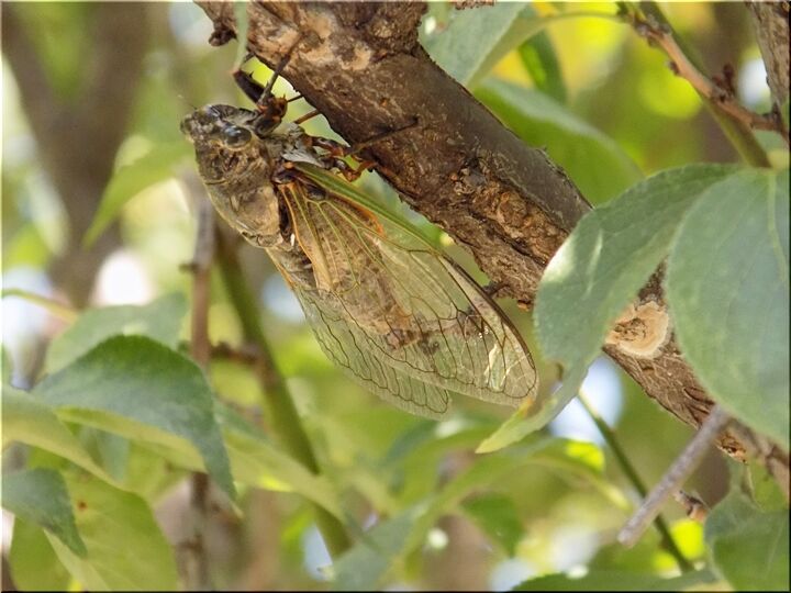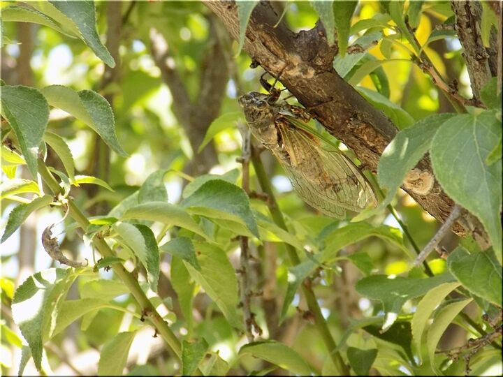 何処にいるのだろう…と見つめてみますと、うん、うん、おりましたネ。これは、鳴き声からしてクマゼミのようですねぇ~