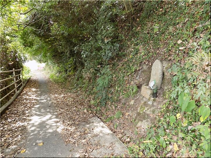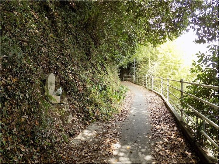そうしますと、右側(山側)の斜面に石仏が…これは、〝GoogleMap〟で確認しますと、「長和・草戸新四国八十八ヶ所第16番観音寺」のようであります。どなたか、紫陽花の花を供えておられますけど造花かも(^-^)