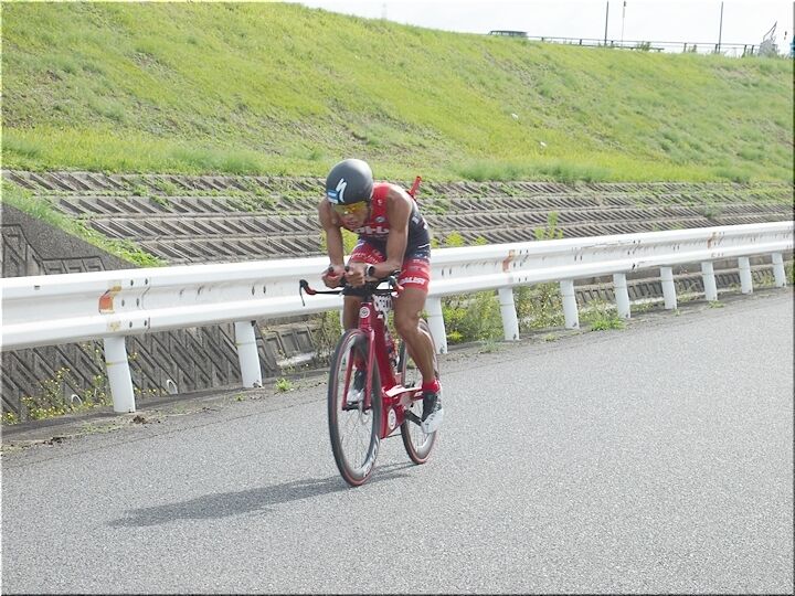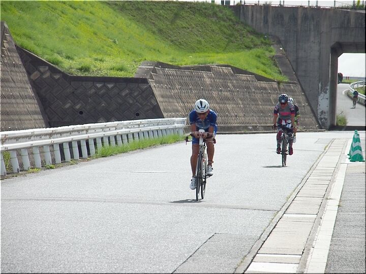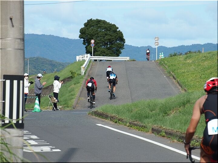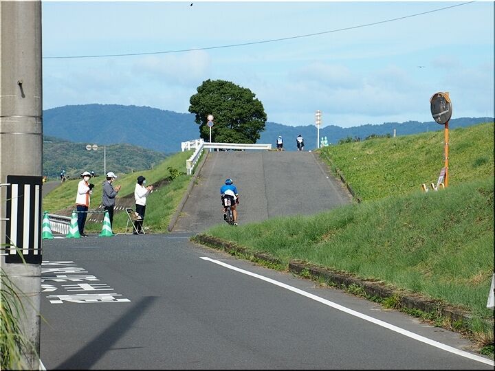 時間を見ますと、A.M09:30ですから、既に1.8kmのスイムは終わり、80km(10km×8周回)のバイクに入っていますから、芦田川右岸(水呑側)でバイクの観戦・応援となりました(^.-)☆