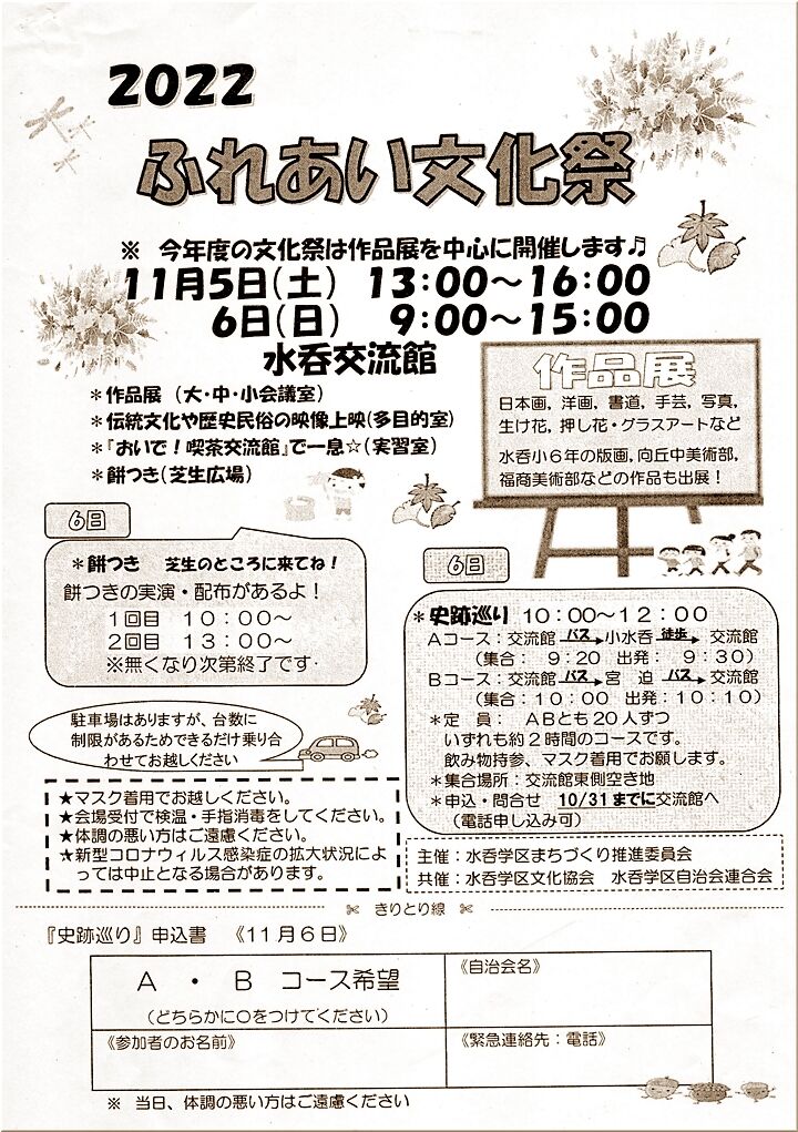 先日、町内会の回覧で「ふれあい文化祭」のご案内が入っておりました。ふれあい文化祭は、コロナの関係で3年振りの開催となりますのでしょうか…