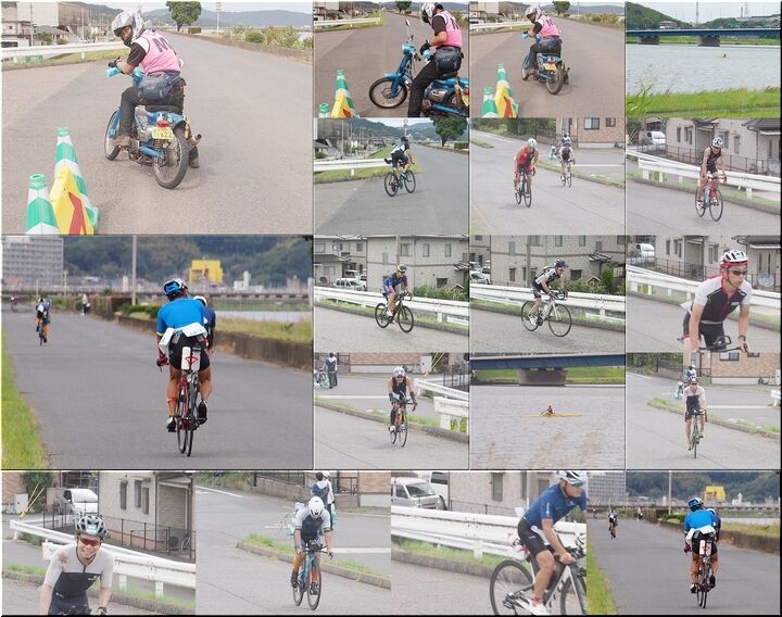 このバイクの男性、先導車かと思っておりましたら、うん、うん、選手の落下物の回収担当スタッフでありました(^.-)☆