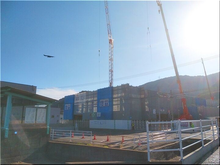 こぅして、毎回、藤井病院建設現場を画像に納めますのが日課となってしまいましたけど、う~ん、工事用シートで覆われ、作業の様子が見れなくなりました(^-^;
