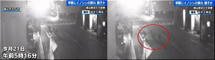 これは今月21日、福山駅近くで防犯カメラがとらえたイノシシの映像です。福山駅から近い場所で目撃情報が寄せられたのは今回が初めてで、警察と福山市は注意を呼びかけています。