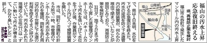◆福山の汚水上昇、応急復旧を終了