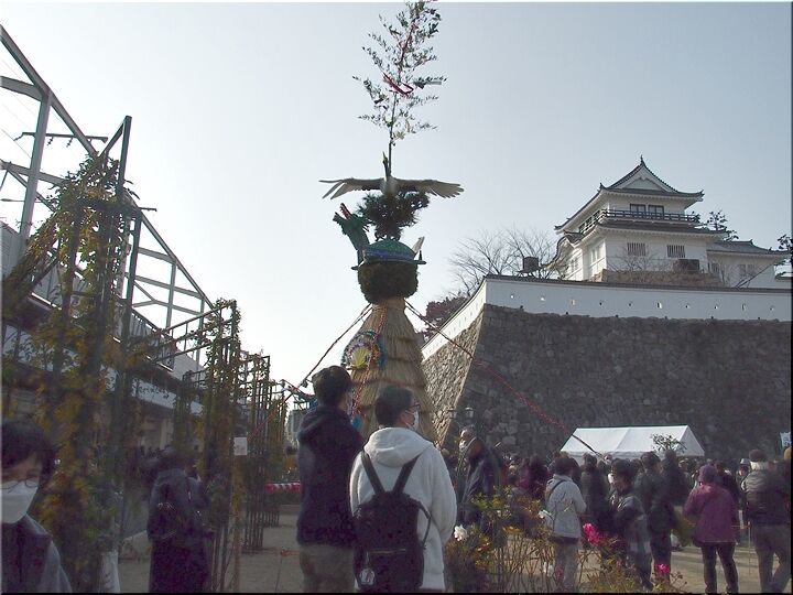 水野勝成公が、36基のとんどの中で、二番目に出来栄えが良いと褒められたのが、上魚屋町、現在の城見町の「懸鯛とんど」です。