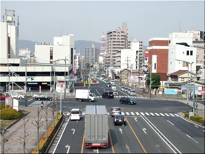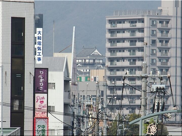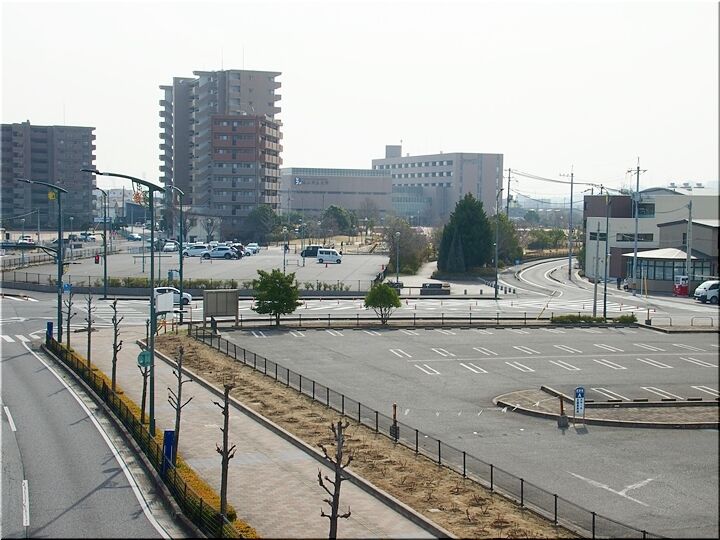 陸橋からは、座床・四ツ樋周辺を眺望です。リーデンローズの建物の横に駐車場が隣接ですけど、この辺りが〝古座床〟のようですネ。