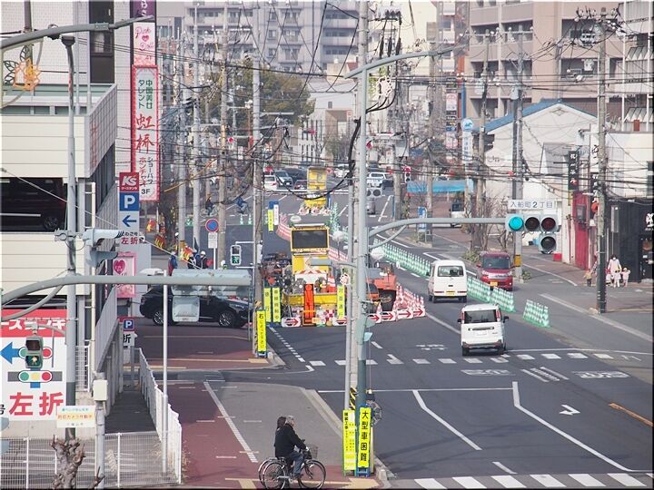 次は、ポートプラザ日化~リーデンローズ間を繋ぎます陸橋上に向かいます。