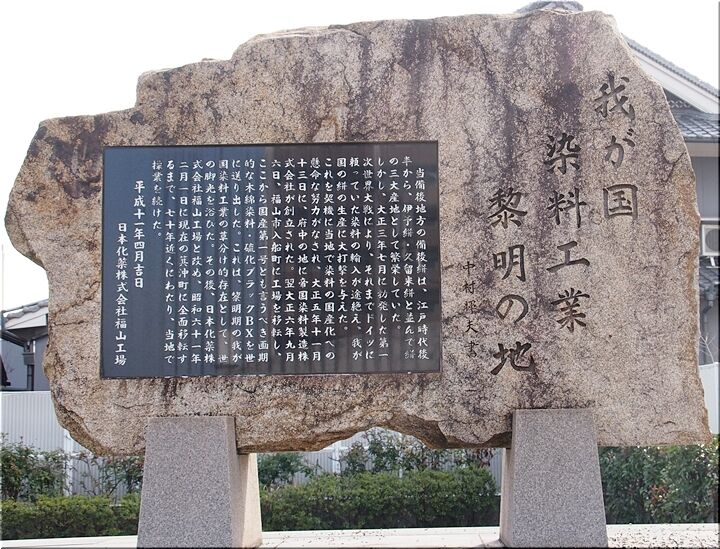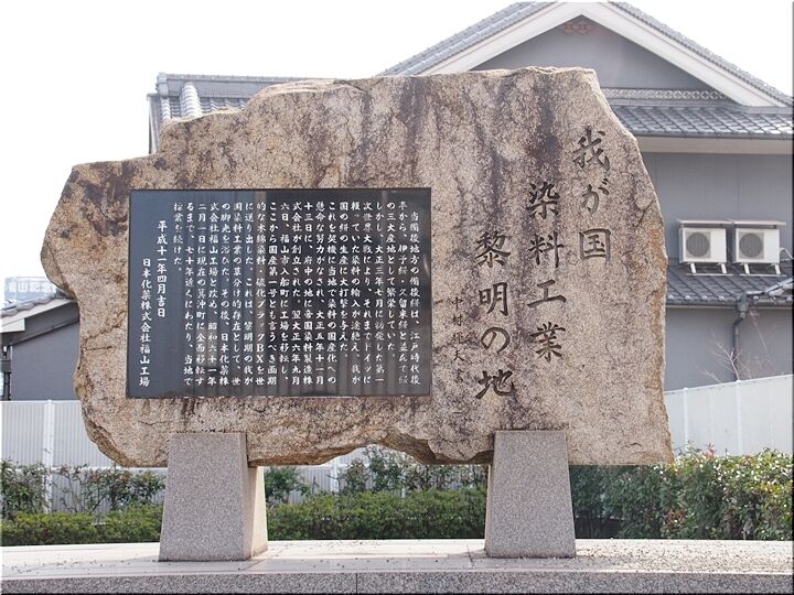 これを契機に当地で染料の国産化への懸命な努力がなされ、大正5年11月13日に、府中の地に帝国染料製造株式会社が創立された。翌大正6年9月6日、福山市入船町に工場を移転し、ここから国産第一号とも言うべき画期的な木綿染料・硫化ブラックBXを世に送り出した。これは、黎明期の我が国染料工業の草分け的存在として、世の脚光を浴びた。その後、日本化薬株式会社福山工場と改め、昭和61年2月1日に、現在の箕沖町に全面移転するまで、70年近くにわたり、当地で創業を続けた。
