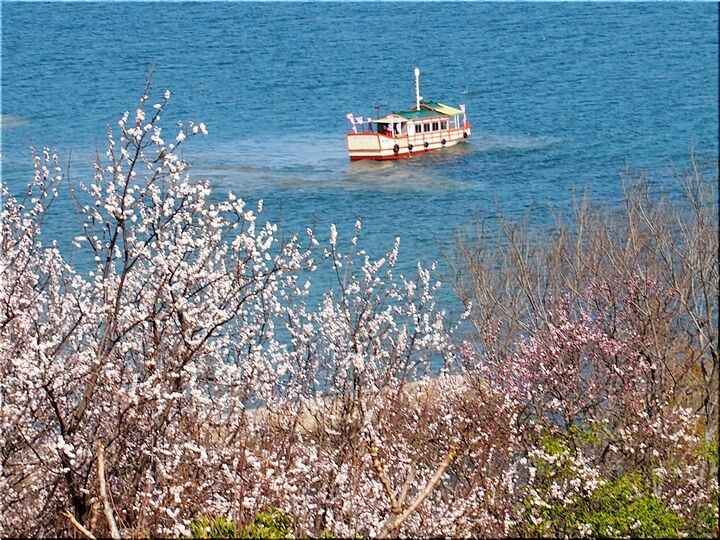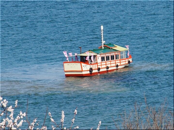 少し傾いた状態で、ズッと同じ場所に駐まっておりますから、乗客の皆様が海から杏畑の写真を撮り易いよう駐まっているのかも…今年は、サービスがいぃなぁ~と思いながら、たまたま画像に納めておりました。