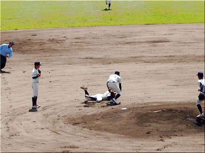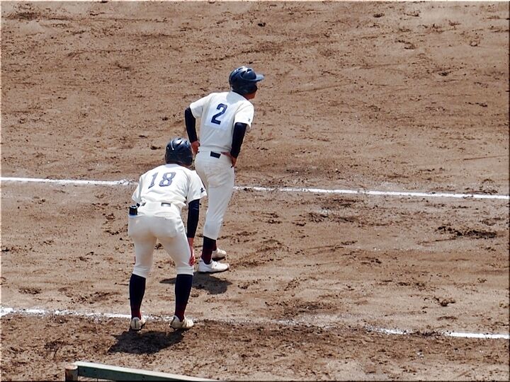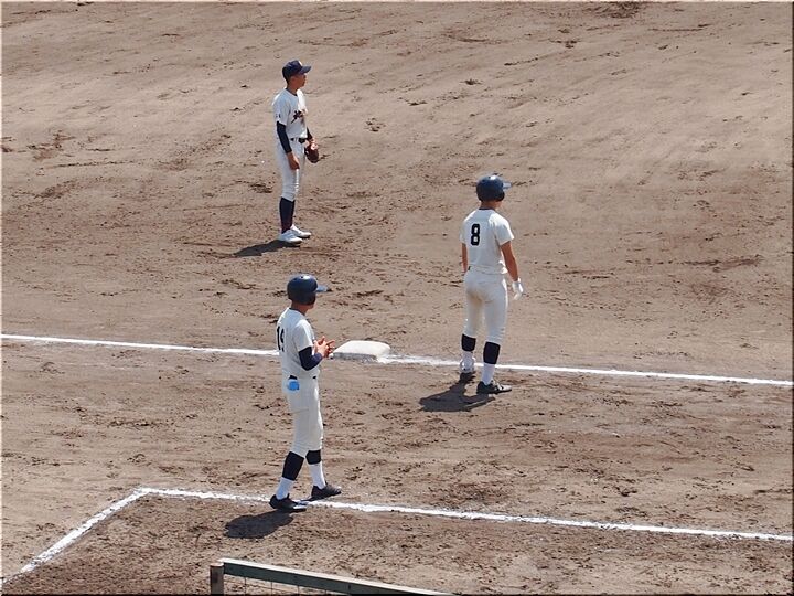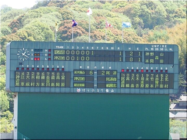 4・5回と両チーム無得点で、6回表の尾道商業。待望の1点が入り「尾道商1×1神辺旭」と追い付きまして、まだ追加得点のチャンスが続きます。