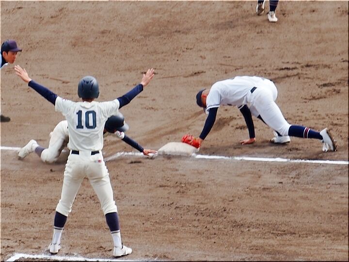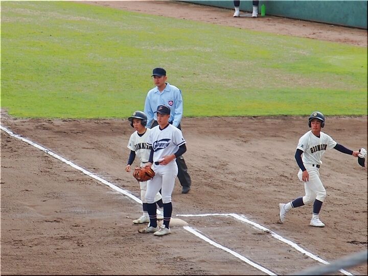 本日の第三試合は「総合技術×祇園北」戦で、三原勢と広島勢の対戦ですネ。先攻は祇園北で、いきなり得点チャンスを迎えますが、残念ながら得点には至らず無得点。