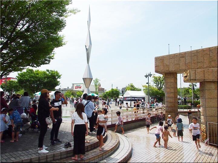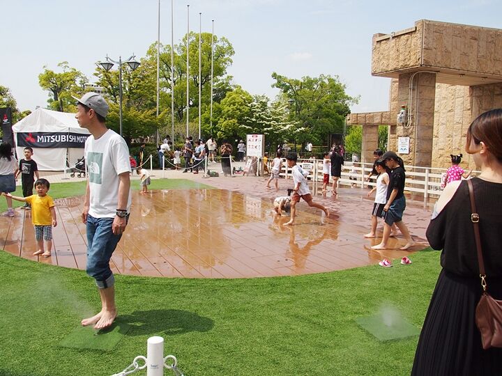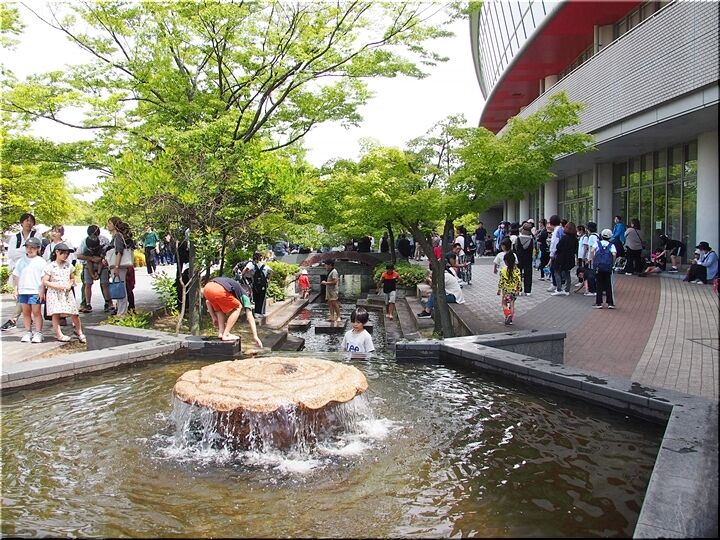 親水広場では、チビッコ達が楽しそうに水遊び。多少汗ばむ感じもありますから、水遊びは涼しくてさぞ楽しい事でしょうネ(^.-)☆