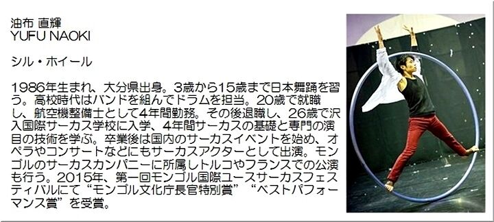 沢入国際サーカス学校卒業のサーカスアーティスト。