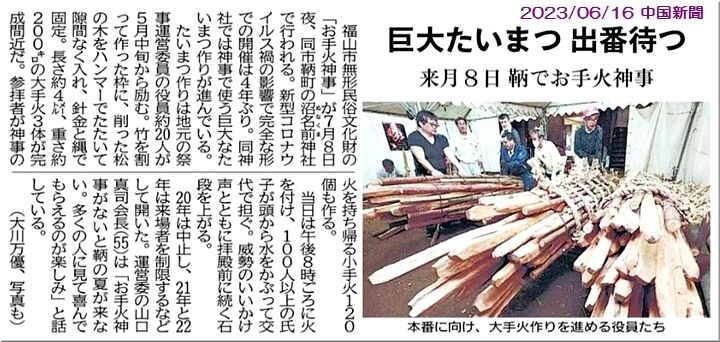 鞆町の「沼名前神社・お手火神事」は、毎年、7月の第2日曜日の前夜に開催されますけど、今年は〝7/8(土)〟の開催のようですネ。