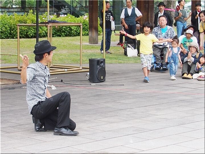 〝komatan〟sanの妙技を熱心に見守る黄色のTシャツの男の子…表情豊かな反応で、この男の子を観ていますのも、実に楽しいものでした\(^_^)/