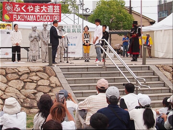 グランプリ大会の表彰が終わりますと、〝ふくやま大道芸2023〟に参加されましたパフォーマーの皆様がステージ上に集合し、記念撮影となりました(^.-)☆