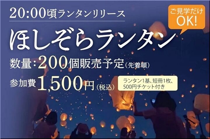 販売時間/17時から先着順販売にて引き換えチケットをお渡しします。ランタンのお渡しは18:30~19:30までにお越しください。