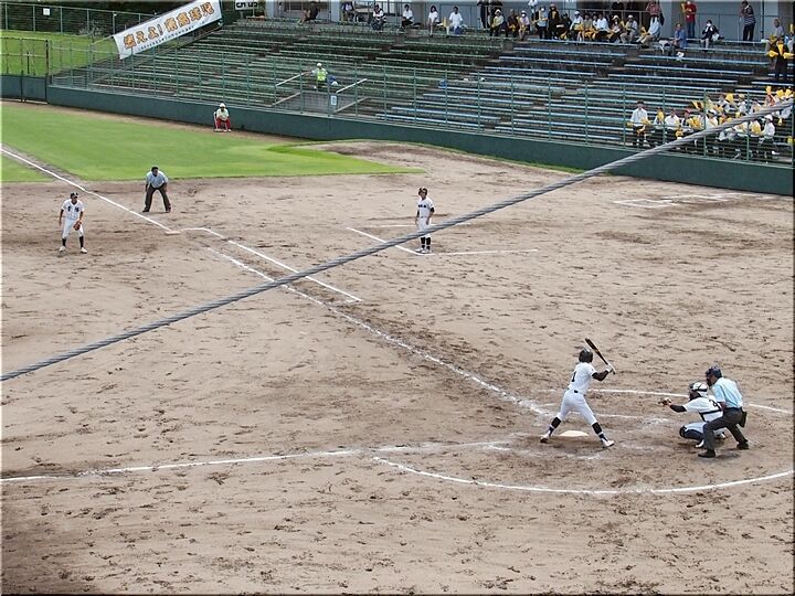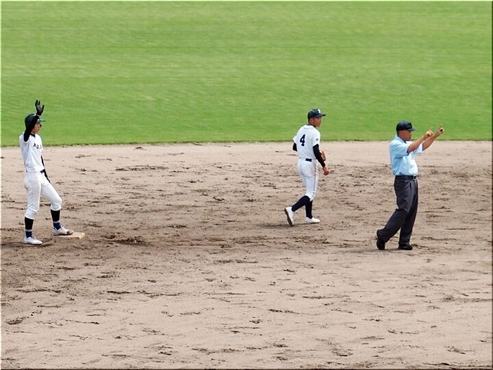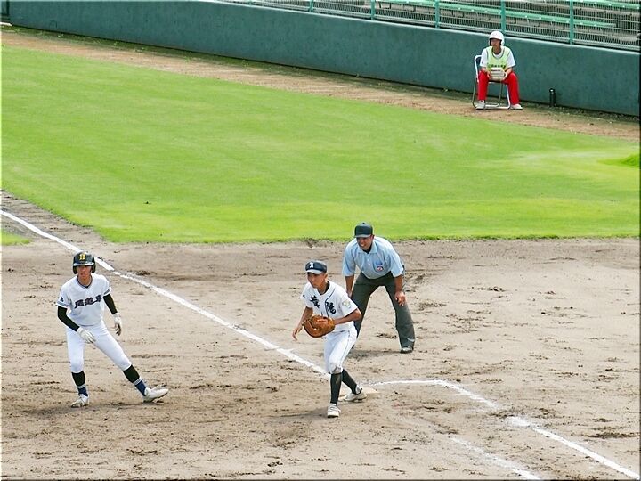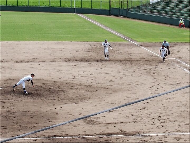 5回表の葦陽高、0アウト1、2塁と得点チャンスを迎えるが、後が続かず無得点。