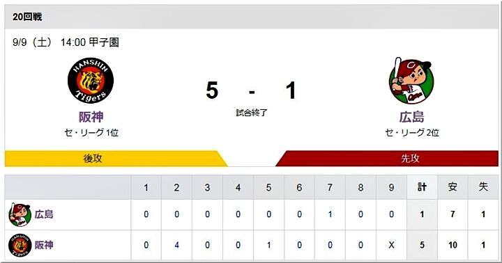 --- 2023/09/09(土) 14:00 甲子園 Sportsnavi ---