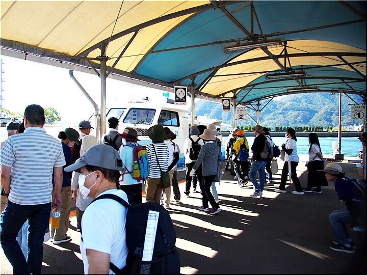 高速船乗船まで、未だ暫く時間がありますので、港湾ビル待合室に掲示の〝瀬戸内周遊ルート〟を眺めたり、頂いたパンフレットに眼を通しておりますと、A.M.9:00頃でしたか…高速船が到着です。
